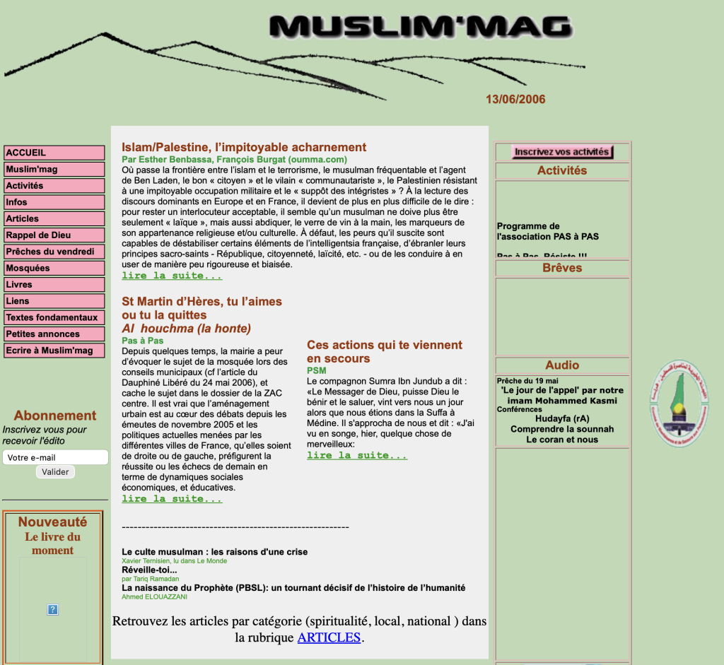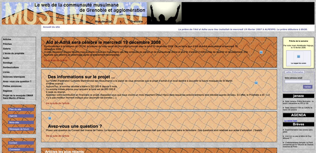 C’est le moment de faire un bilan … ? Mais ce n’est plus un bilan, c’est une histoire à écrire ! Celle de frères et soeurs qui ont été les pionniers de l’internet musulman en diffusant les khotbas de l’agglomération qui permettaient à ceux qui ne pouvaient pas assister d’écouter le soir en rentrant du boulot. Ils écoutaient nos imams Mohammed Kasmi, Abdelhakim Ahonseri, Allal Jamad, et semaine après semaine, la voix de l’islam à Grenoble se faisait entendre en arabe et en français, en toute simplicité et transparence.